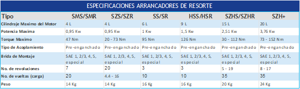 Los arrancadores de resorte son dispositivos mecánicos accionados por resorte para arrancar motores diésel, como reemplazo o como un sistema de arranque redundante que permite arrancar un motor de manera fácil y segura manualmente. Un arrancador de resorte es simple, compacto, confiable y, a menudo, la opción preferida para el arranque de respaldo.