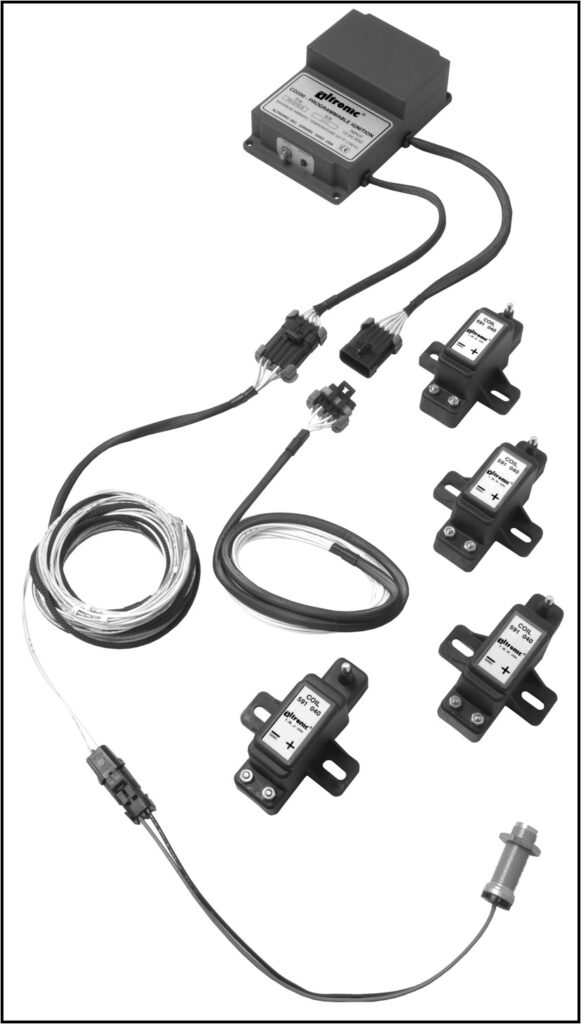 El sistema, alimentado desde 12-24VDC, no tiene partes móviles. Se utilizan bobinas elevadoras, ya sea individual (una por cilindro) o un módulo de bobina de varias torres (una para 4 o 6 cilindros) para eliminar el distribuidor de alta tensión convencional.