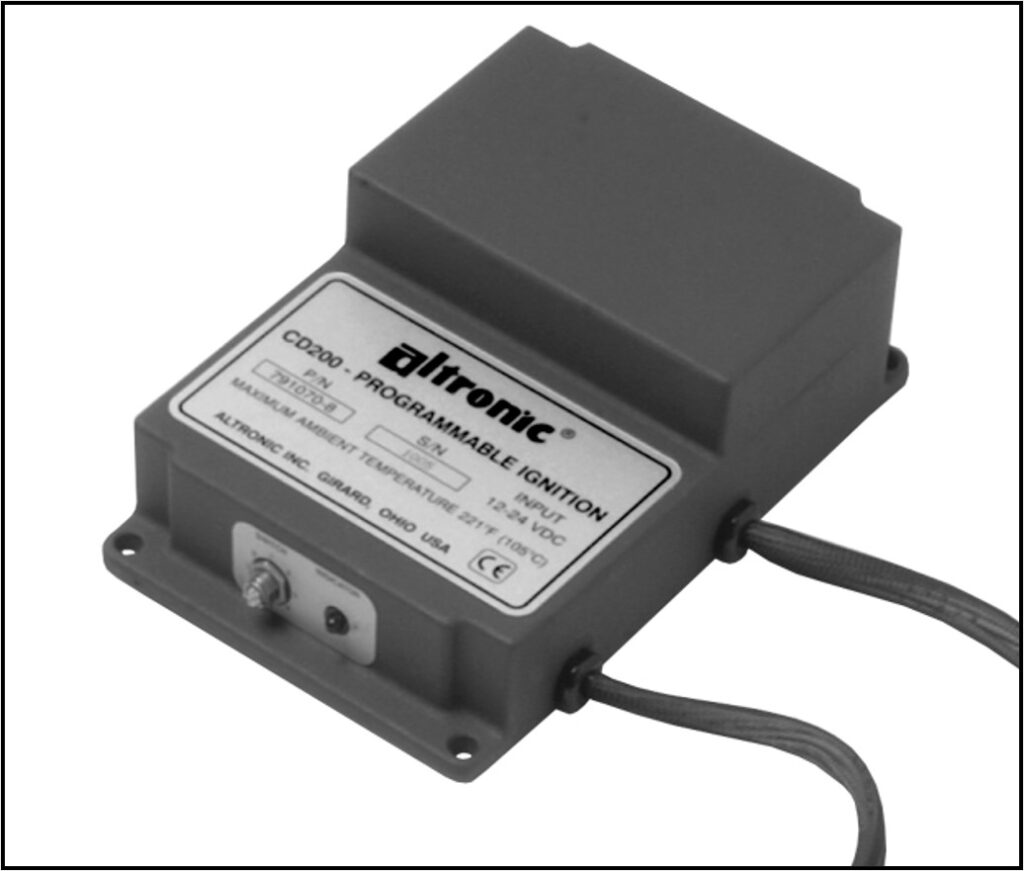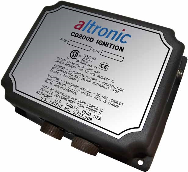 El sistema de ignición CD 200D de Altronic es un sistema digital de descarga de condensador de alta energía diseñado para su uso en motores industriales de gas de 8, 12 y 16 cilindros. El CD 200D alimentado por corriente continua ha desplazado a los sistemas de ignición mecánica, de alto mantenimiento, al eliminar las piezas móviles y ofrecer buenas características de control y flexibilidad de funcionamiento en toda la gama de aplicaciones adecuadas.